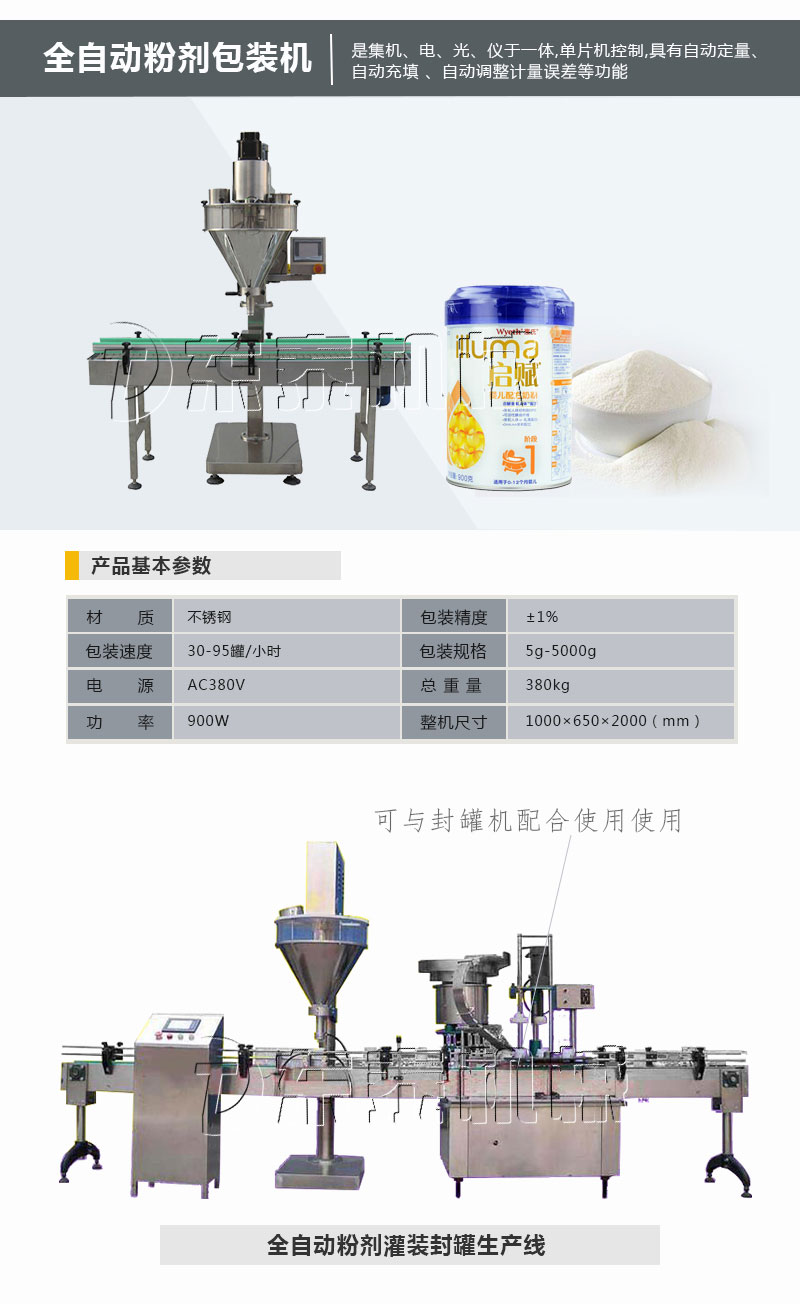 ①全自動奶粉灌裝機(jī) 外表除電機(jī)外其余均為不銹鋼制成;組合式透明料箱,無需工具即可方便拆洗。