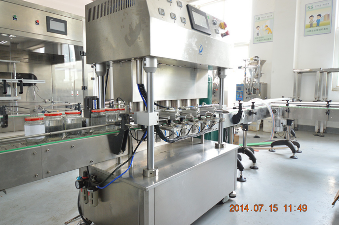 2、精確的絞龍分瓶機構和擋瓶系統(tǒng),保證瓶子定位精確無誤,確保辣椒醬馬口鐵真空旋蓋機的旋蓋效果。