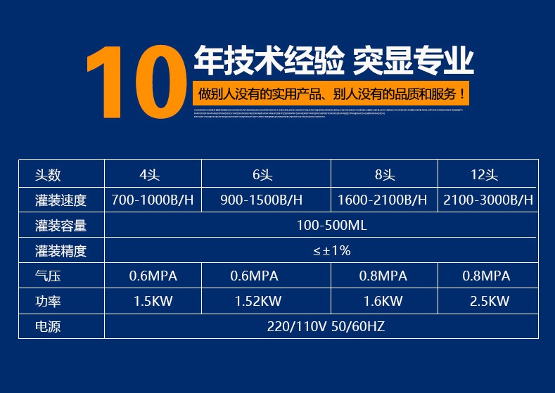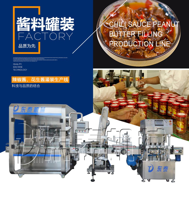 設(shè)備簡(jiǎn)介 該生產(chǎn)線適合中小口徑三旋、四旋玻璃瓶調(diào)味醬的分裝,適合醬料、含顆粒黏稠物料的灌裝,物料接觸部分均采用316不銹鋼,整機(jī)304不銹鋼,符合食品衛(wèi)生標(biāo)準(zhǔn)。該機(jī)設(shè)計(jì)合理,機(jī)型小巧,立式結(jié)構(gòu),節(jié)省