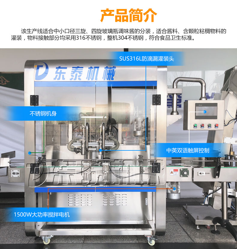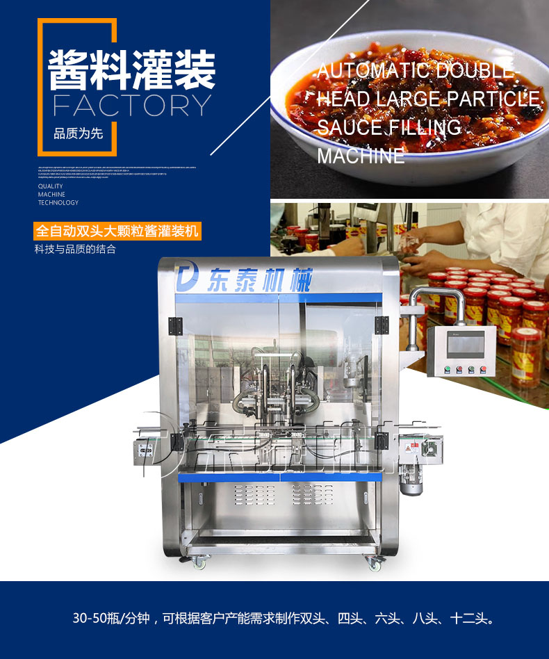 隨著機(jī)械技術(shù)的快速發(fā)展灌裝機(jī)的發(fā)展也是日新月異,使得其種類比較多。蘸醬在我國擁有悠久的歷史,在我國烹飪中占有著重要的地位,發(fā)展到現(xiàn)在在做菜和食品中也不可或缺,巨大的市場使得蘸醬灌裝機(jī)擁有巨大的市場,醬類廠家在引進(jìn)設(shè)備時都想采購到高效率、適合自己的蘸醬灌裝機(jī)械。人們對食品要求的提高使得醬類生產(chǎn)廠家迎來了較大的變格,安全衛(wèi)生是非常重要的標(biāo)準(zhǔn),因此對蘸醬灌裝機(jī)的選擇也更加的要求嚴(yán)格,許多傳統(tǒng)的機(jī)械已經(jīng)不能滿足企業(yè)高標(biāo)準(zhǔn)、高效率的要求。因此選擇一款適合的蘸醬灌裝機(jī)械產(chǎn)品顯得尤為重要。
