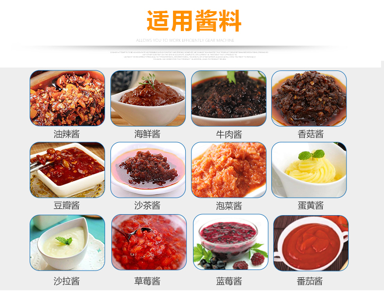 辣椒醬做為一種調(diào)味品,已經(jīng)成功走進了人們的日常生活,并占有了很重要的地位。辣椒醬不僅可以單Du食用,還可做為調(diào)味品,增加菜肴的味道于色彩。辣椒醬不僅可以開胃,還能預(yù)防多種疾病的發(fā)生,因此受到了極大的歡迎,市場需求量很大。而辣椒醬包裝一般是在瓶裝等,方便儲存,其中自然少不了灌裝機的出現(xiàn)和幫助,同樣的辣椒醬的熱銷另一方面也推動了灌裝機的應(yīng)用和發(fā)展。接下來我們一起看一款“性價比”和“物美價廉”同時兼容的一款顆粒醬灌裝機到底有什么厲害?