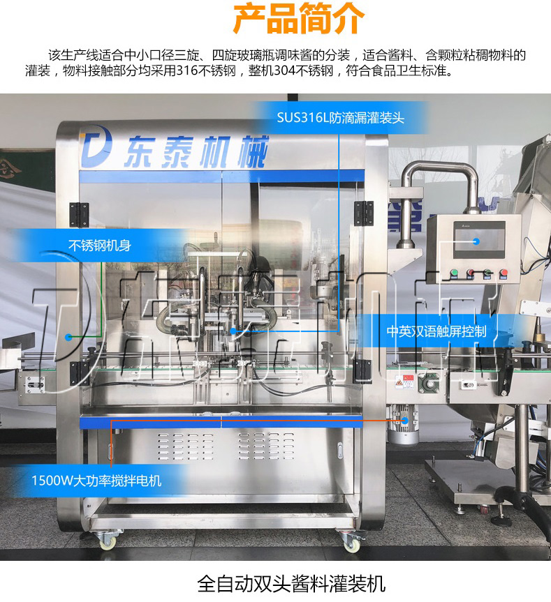 目前的生活水平的提高,也致使了更多人開始在吃上做起文章。生活中的人們對(duì)于吃的要求越來越高,對(duì)味道的追求近乎狂熱,如今市場(chǎng)上的辣椒醬灌裝機(jī)在使用過程中操作的實(shí)際操作降低了人員要求并且才做簡(jiǎn)單對(duì)操作眼的專業(yè)要求也在不斷降低,這大大節(jié)省生產(chǎn)成本,深受廣大用戶的歡迎。為了保證醬料的效果能夠穩(wěn)定持久,這款辣椒醬灌裝機(jī)裝有接料槽,防止調(diào)試的時(shí)候或者出故障的時(shí)候物料灑地上以及清理麻煩,走進(jìn)超市放眼望去五花八門的辣椒醬,由此可見辣椒醬灌裝機(jī)的未來的潛力有多大的。